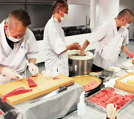 ご自宅やオフィス、パーティー会場に寿司ネタを持ち込んで、目の前でご提供するサービスです。